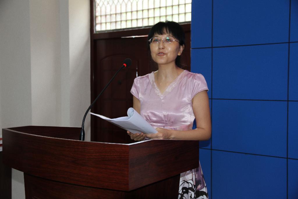 先进基层党组织代表、外语系党总支书记拓欣发言