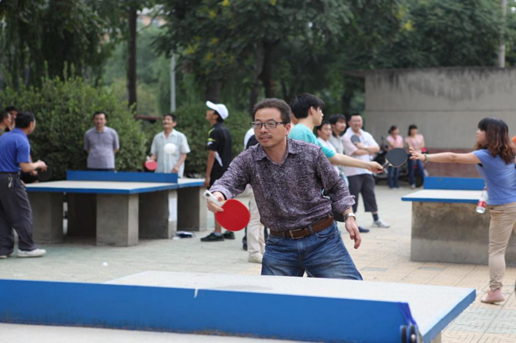 5月22日下午,公司在乒乓球场举行开幕式,理工系分工会主席张振邦发言,公司工会主席、副经理邵思飞宣布比赛开始。