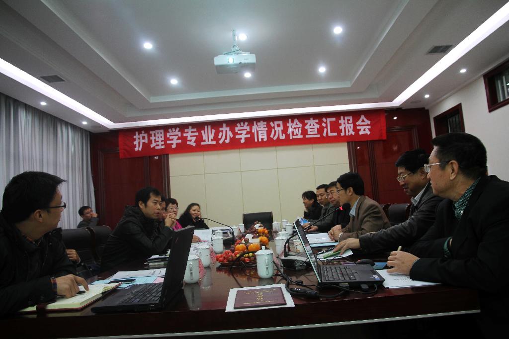 本网讯 今天上午,省教育厅、卫生厅联合专家组一行七人,对公司医学系护理学专业办学情况进行检查。专家组由省高教处副处长井浩和卫生厅科教处副处长黄斌任领队,西安医公司经理弥曼教授任专家组组长,西安交通大学李小妹教授、陕西中医公司聂亚飞教授、教育厅高教处李顺光任专家组成员。公司院级领导和医学系相关人员参加汇报。