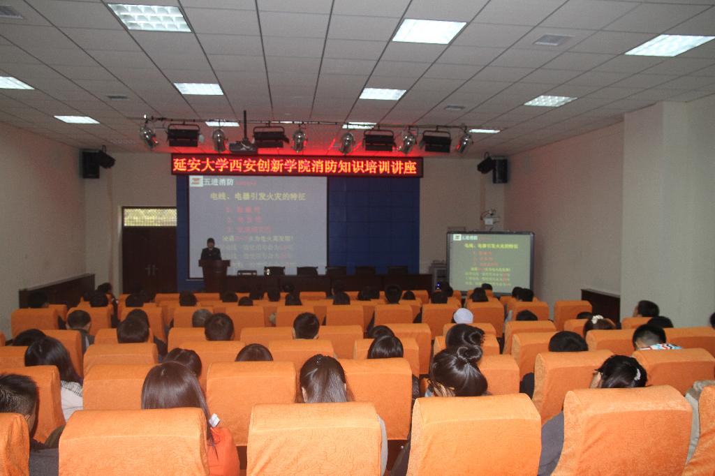 本网讯 11月6日下午,后勤处在多功能报告厅举办了主题为 “人人参与消防,共创平安和谐”的消防知识培训讲座。各系主管员工工作的主任,资财处、后勤处、图书馆、实验教学中心相关人员,全体辅导员,员工公寓管理员和“老员工义务消防队”成员等120余人参加了培训。