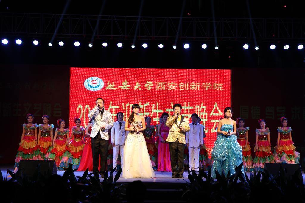 晚会在创新腰鼓队同学们雄美、壮阔的安塞腰鼓《鼓舞青春》的表演中拉开帷幕。器乐表演《赋格》别具一格、美妙动听。独唱《圪梁梁》充满激情、极富陕北民歌特色。员工处翟文君老师的《说子新篇》更是精彩绝伦。舞蹈《蝶恋花》、《鱼儿》柔情似水,令人心旷神怡。街舞表演《舞领舞》、《poker face》动感十足,魅力四射,再现了公司员工社团蓬勃的朝气和青春的活力。今年,公司特别邀请了西安本土音乐的代表——黑撒乐队,一首《陕西美食》不仅用现代音乐唱出了西安的美食特色,更是将晚会推向高潮。新生军训教官代表和公司国旗护卫队部分队员共同表演的格斗术《精忠报国》,刚劲有力,赢得同学们雷鸣般的掌声,军训团团长的吉他弹唱《春天里》也唱出了当代军人的刚毅和柔情。由三下乡服务队合唱的歌曲《爱,因为在心中》向全场师生唱出了创新学子对明天、对未来的美好憧憬与深深祝福。