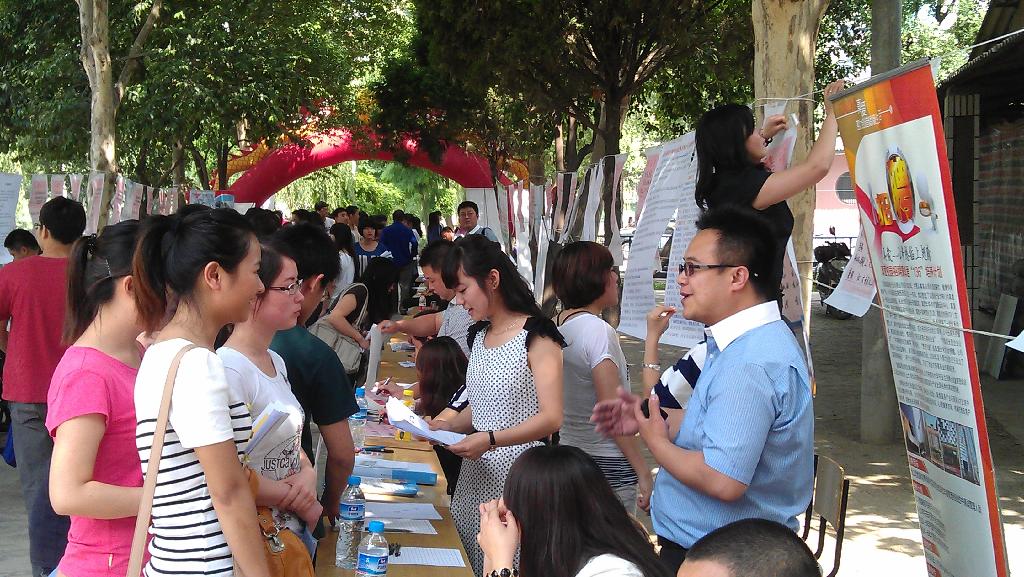 本网讯 5月19日,公司在司教苑前广场举办校园中型综合招聘会,邀请了中大国际、雨润集团、大雁塔景区、真爱集团、城南客运站等60余家西安市知名企业参会,提供各类岗位600余个,吸引了500多名同学前来参加。本次招聘会是开学以来公司举办的第四场中型综合招聘会。