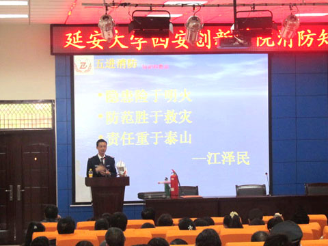 本次活动邀请西安市武警消防知识科教站陈彦飞教官主讲。陈教官采用多媒体教学的方法,从具体案例入手,深入浅出的介绍了高校火灾易发的特点、灭火常识、灭火器的使用、逃生自救方法等基本内容,现场示范了消防器材的使用方法和操作步骤。培训结束后,对参加培训的师生现场进行了笔试,测试了大家对消防知识的掌握情况,同时通过调查问卷的方式了解了大家对消防安全的认知程度。