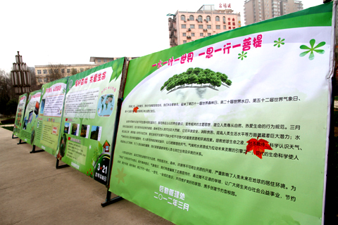 本网讯 为积极宣传第四十一届世界森林日、第二十届世界水日、第五十二届世界气象日、第十七届世界防治结核病日的相关主题,后勤处于3月19日在1#教学楼南广场,集中展出了题为:“保护森林、关爱生命”,“节约用水、从我做起”,“天气、气候和水为未来增添动力”和“世界结核病防治日”等五块专题宣传展板。