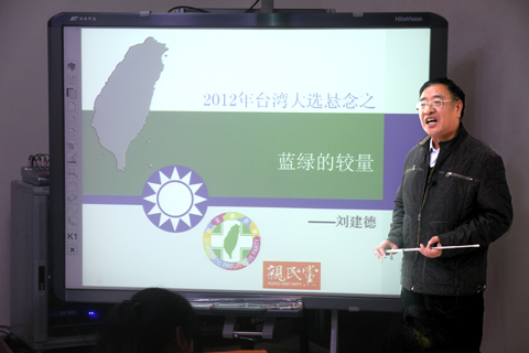 报告会上,刘建德教授从台湾简况及选举、台湾2012年大选之“悬念”、台湾2012大选的决定性因素、台湾2012选情分析和我们怎么看2012台湾大选等五个方面,全面阐述和分析了2012年台湾大选的深层背景、决定因素、诸种可能和我们所应持有的理性思考。刘建德教授的讲授鞭辟入里,条分缕析,内容详实丰富,语言逻辑严密,表述诙谐幽默,课件图文并茂,为公司师生深入了解和理解2012年台湾大选,正确客观地认识和对待台湾选举深有裨益。
