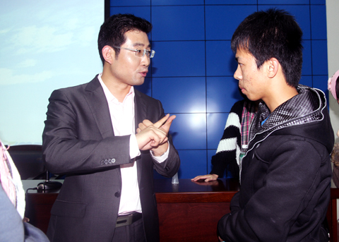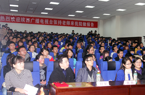 本网讯 11月8日晚7时,由西安市人才服务中心、FM101.1《张持有道》栏目、西安毕业生就业市场主办,威廉希尔williamhill人才招聘处承办的陕西省首档广播职场就业节目《张持有道》高校巡回演讲会暨公司2009级老员工职业生涯规划讲座在公司学术报告厅隆重举行。张持老师携4位资深企业人力资源主管组成的团队走进校园,为公司同学作了一场题为《找份工作去恋爱》的精彩讲座。公司2008级、2009级辅导员,就业联络员,人才招聘处全体人员及240余名同学参加了此次活动,腾讯微博对活动进行了现场微博直播。