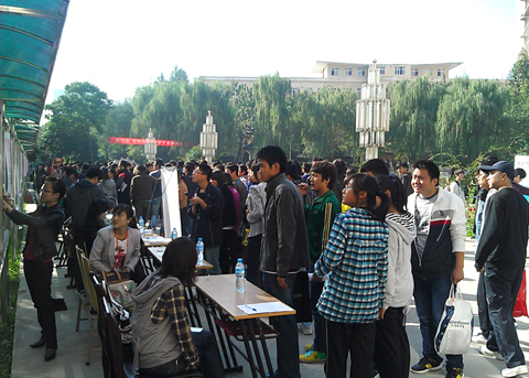 作为公司2012届毕业生第一场中型校园招聘会,本次招聘会涉及了医学、营销、管理、建筑、外语、教育和计算机等多类专业,吸引了各系毕业生到场咨询。通过与用人单位的直接交流,毕业生了解当前的就业形势、就业信息,对自己感兴趣的岗位作进一步的咨询,争取面试机会,为进入职场作前期准备。其中,也有部分低年级同学也积极争取面试机会,向企业投递简历,寻求实习、就业机会。
