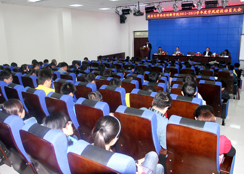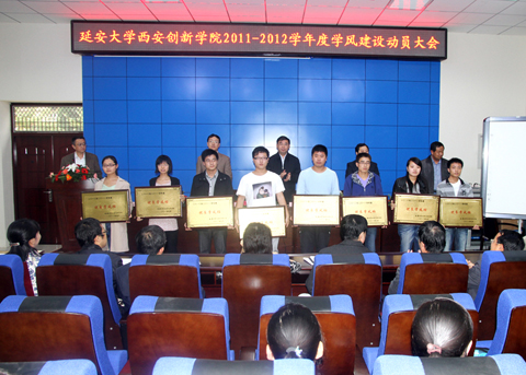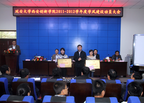 大会首先由员工处处长陈瑶介绍了2010—2011学年度学风建设基本情况及评比结果。邵思飞副经理宣读了2010-2011学年度“优良学风系”和“优良学风班”的表彰决定,公司领导为获得“优良学风系”的医学系和经管系颁发了奖牌和奖金,为旅游0801班、建筑1001班、汉语1001班、数学1002班、英语1002班、护理1003班、艺术设计1002班等16个获得“优良学风班”的班级颁发了奖牌,经管系副主任郑敏代表获奖单位介绍了本系学风建设的经验和体会。随后,公司党委常务副书记、副经理封学军宣读了2011—2012学年度学风建设实施方案。