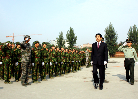 2500名新同学参加了军训汇报表演,伴随着雄壮激昂的《中国人民解放军进行曲》,由各系新生组成的20个方队精神抖擞,步伐矫健地通过主席台,接受与会领导和部队首长的检阅。他们步伐坚定有力,队形整齐划一,口号嘹亮豪迈,彰显了2011级新生自强不息、报效祖国的壮志豪情和蓬勃朝气。许静洪副董事长检阅了军训队伍。按照计划军训团成功进行进行了各个科目的汇报表演。