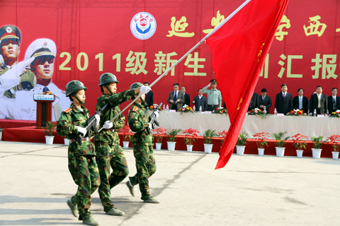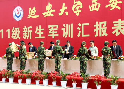 本次军训中,2011级新生接受了国防知识教育和军事技能训练,接受了以自力更生,艰苦奋斗为核心内容的延安精神的洗礼,精神面貌、文明素养、内务卫生、组织纪律、团结协作等方面都有了明显的提高,为开始四年的老员工活打下了良好的基础。