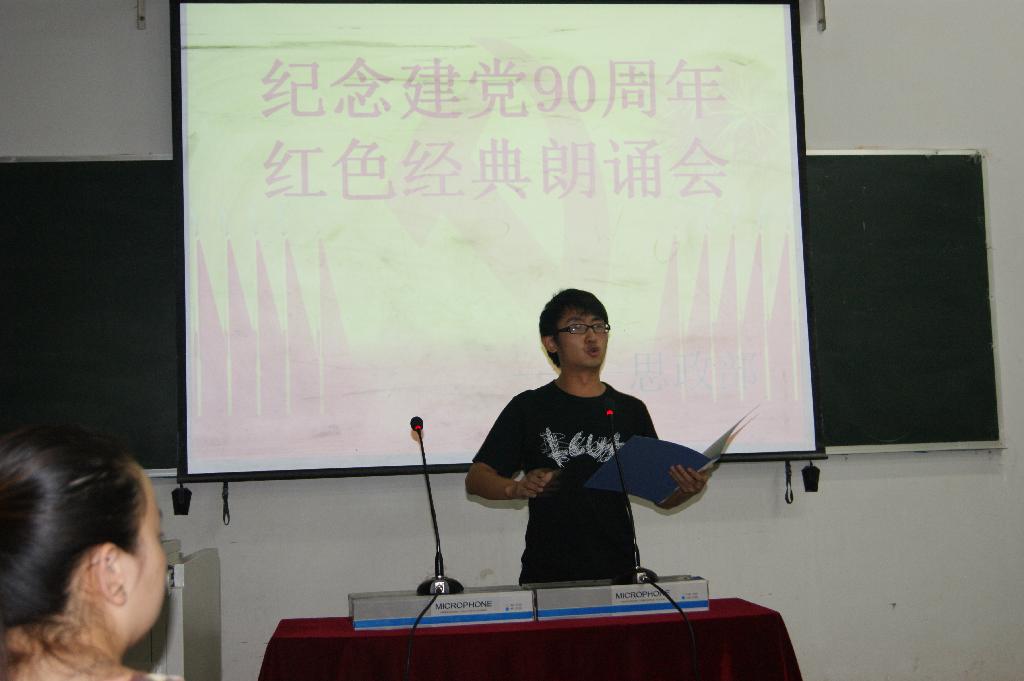 2011年6月3日下午,公司思政部 “庆祝建党90周年红色经典朗诵会”在2号楼103教室成功举行。为庆祝党的华诞,缅怀先辈的光辉业绩,引领青年员工发扬优良传统,牢记历史使命,经受新时期的历史考验,在党的领导下不断将中国特色社会主义事业推向前进,公司思政部特举行了本次活动。