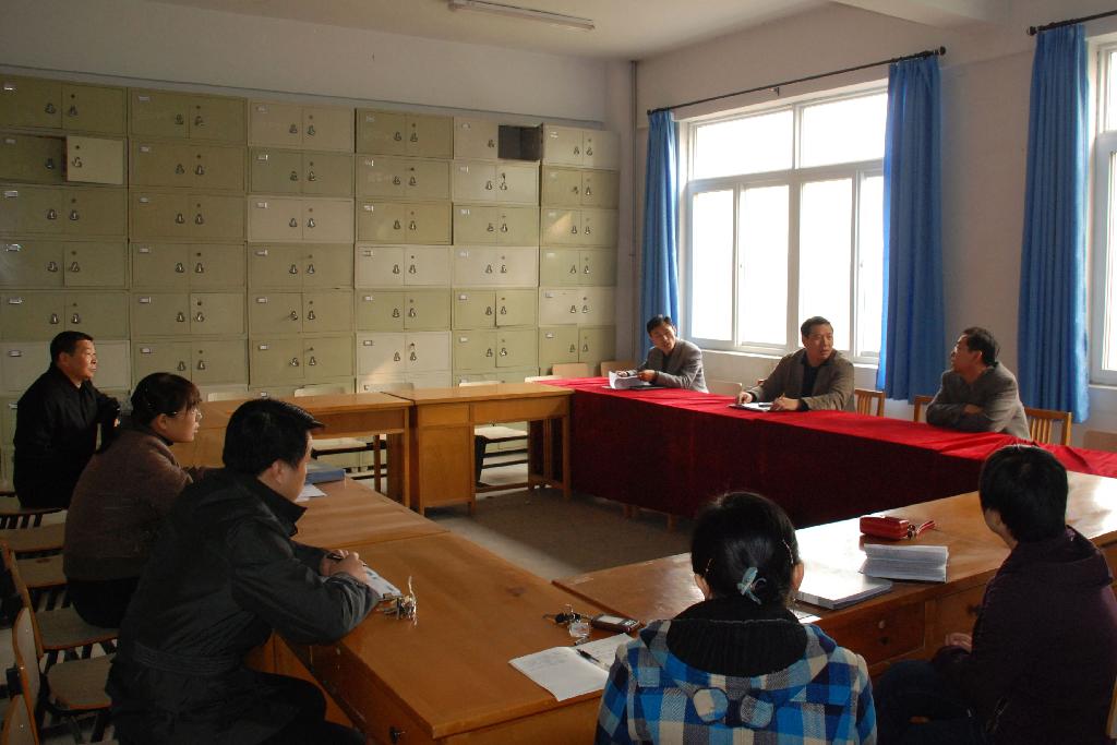 公司档案建设领导小组成员马保国、崔海潮、陈瑶、刘峰等到经管系现场考察,指导档案建设工作。