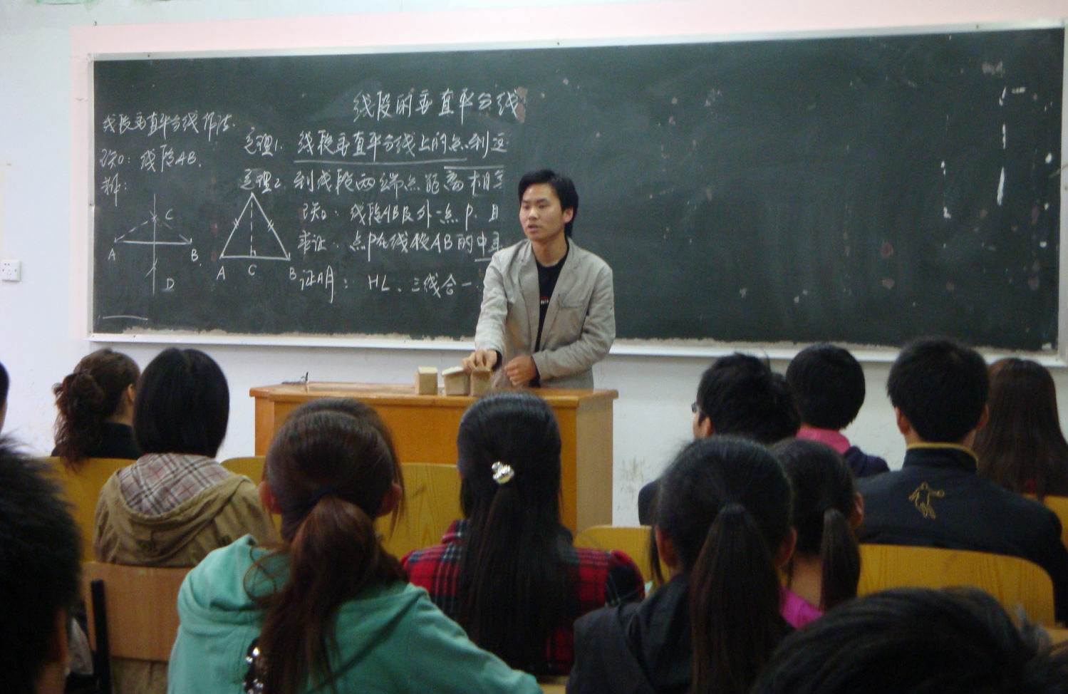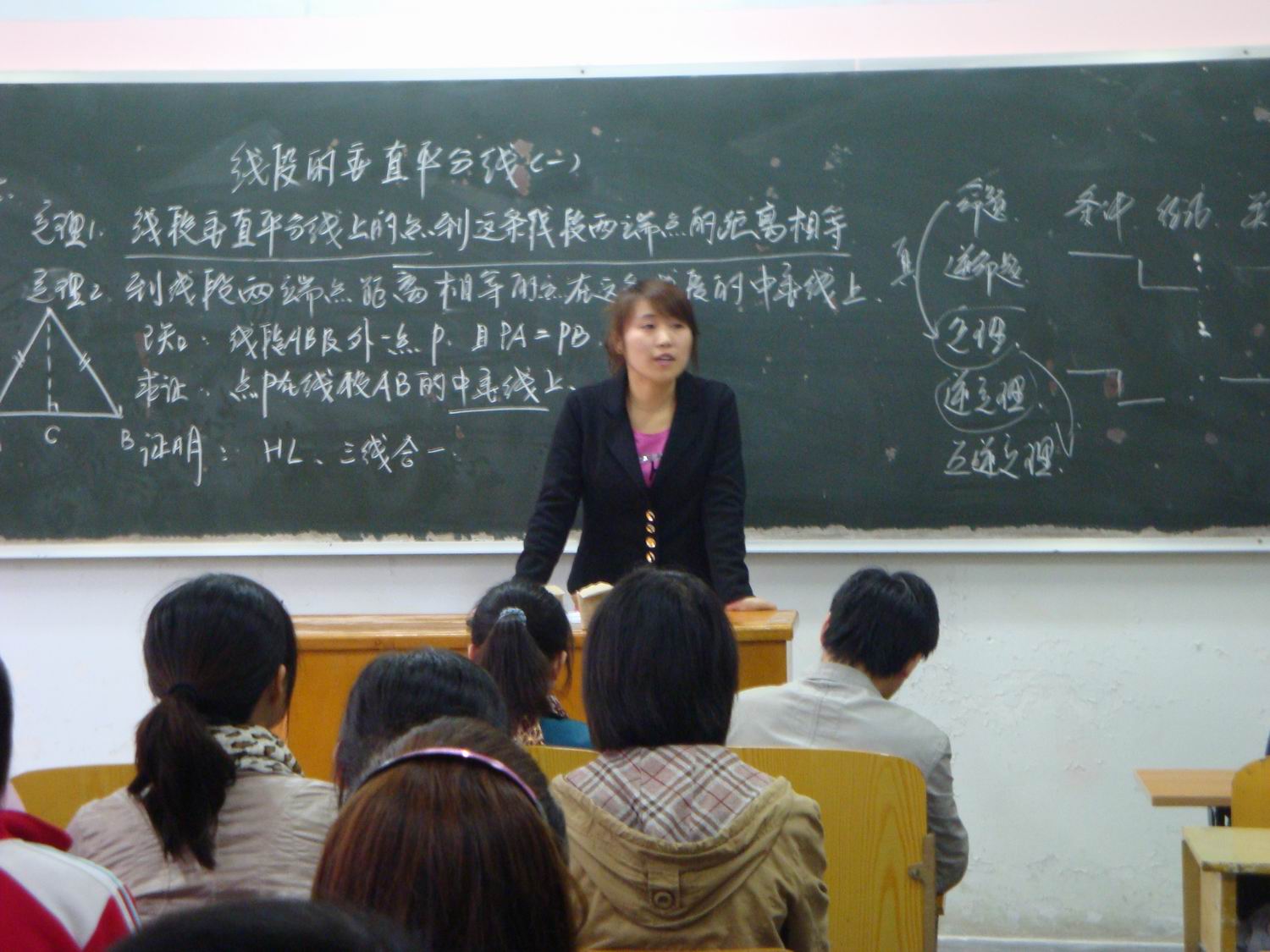 黄燕同学《线段的垂直平分线》一课,以活泼的教风、整洁的板书和深入浅出的见解,使同学们对做一名中学教师应具备的素质有了初步了解。方波同学就怎样讲好一堂课,如何与员工交流进行了讲解。示范课结束后同学们就专业学习、实习实践、考研就业与07级员工进行了交流。理工系系主任张成对示范课进行了点评,两位同学的讲课代表07级教育实习的成果,专业知识的学习和实习实践是相辅相成的,希望同学们明确目标,踏实学习,为今后的实习就业打好基础。