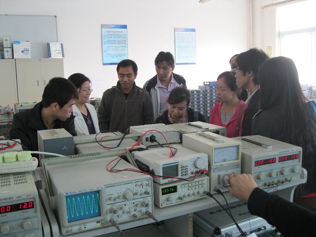 西北大学信息公司经理张志勇教授接待了我中心全体教师,并与实验中心主任宋家鳌教授和杨延宁副教授就实验室建设与实验教学改革进行了交流。西北大学信息科学实验室负责人张远为大家介绍了西北大学实验室管理制度、专业实验课程开设情况、实验室开放情况以及实验教学的创新与改革等,带领大家参观了基础物理实验室、模拟电路实验室、数字电路实验室、高频电路实验室、测量与控制实验室、微电子技术实验室以及电子工程综合开放等实验室,并与正在上课的实验教师和员工进行了交流。