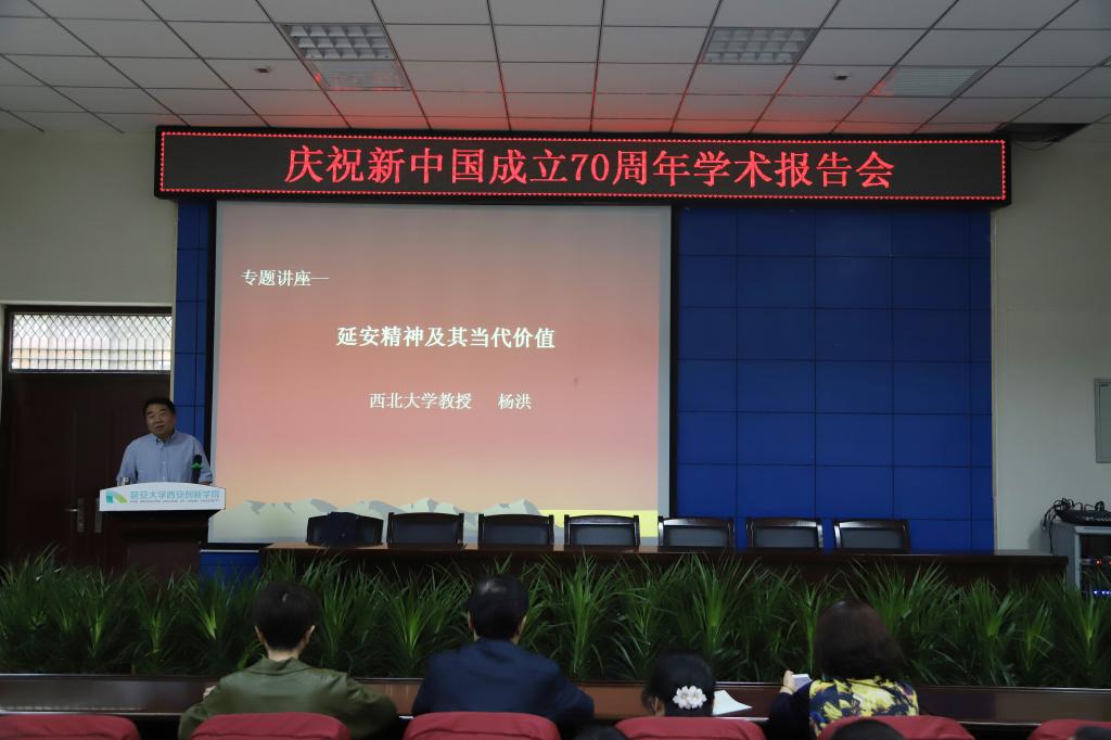 杨洪教授以“延安精神及其当代价值”为主题,从延安精神的概念和内涵、延安精神的产生、延安精神的在中国革命中重要作用、延安精神的当代价值等方面,深入解读延安精神。他表示,延安精神就是延安时期抗大精神、延安整风精神、南泥湾精神、白求恩精神和张思德精神等革命精神的科学总结和概括,并进一步揭示了延安精神的精髓和核心。报告科学、严谨、又不失幽默风趣,使全体师生对延安精神有深入的理解和认识。