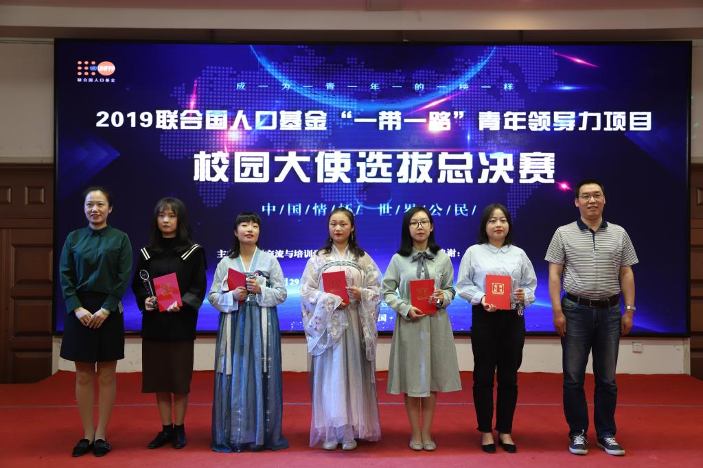 本网讯 29日下午,由国际交流与培训公司主办、外语系承办的联合国人口基金“一带一路”青年领导力项目校园大使总决赛在老员工活动中心举行。副董事长拓欣、外语系主任陈德、员工处处长丁晓宝、国际交流与培训公司经理卫娜、艺术总指导贾斯棋出席。