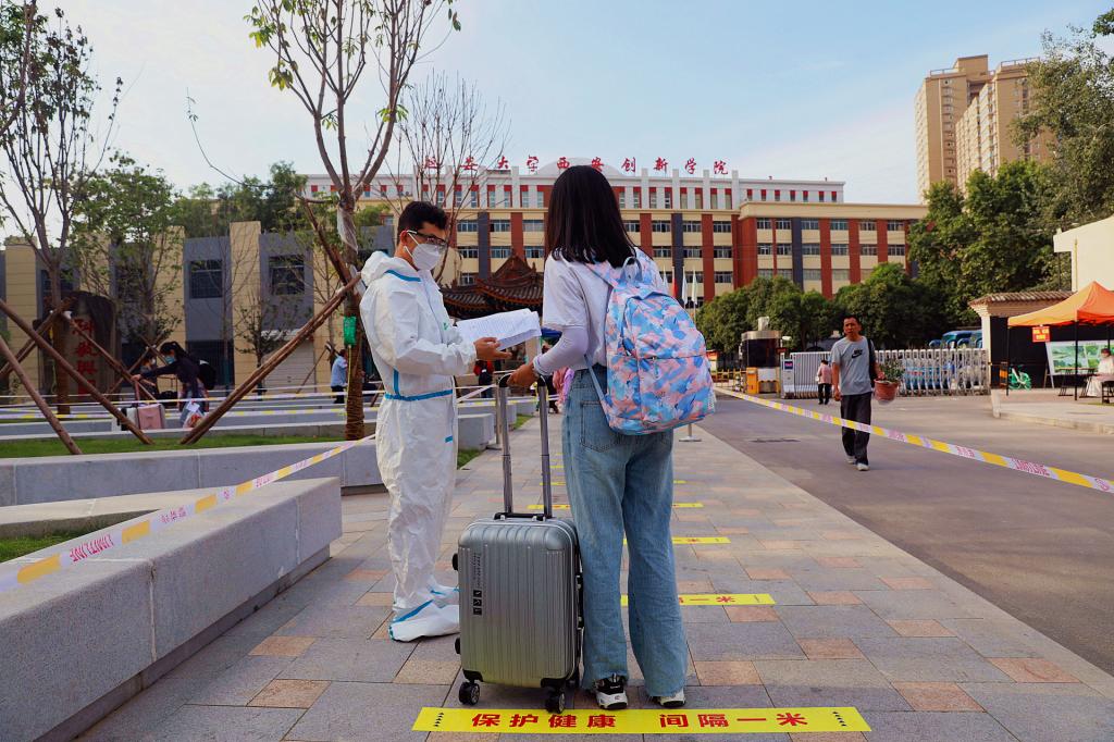 为保证员工顺利返校,公司已提前充分做好校园清洁消杀工作与各项返校工作。在公司工作人员和教师志愿者的引导下,返校员工按要求佩戴口罩,进校需保持1米以上安全间隔有序排队,经过首次测温、核验信息、消毒和更换口罩后,走测温通道进行二次测温,体温测量正常进入各公司登记区登记,提交健康承诺书,查验完成后领取通行证。宿舍区前,宿舍管理员为返校员工再次测量体温,办理入住登记。