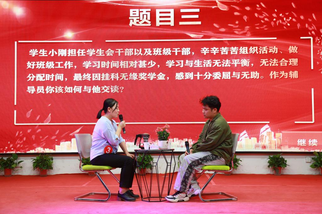 大赛特邀评委郑林科教授做精彩点评,他表示这次比赛是一次精彩且有感染力的大赛,三个环节展现出人人有创新、个个有亮点和辅导员们助人育人的风采。他同时对案例研讨三环节:“原因辨析”“对策研讨”“总结规律”作了详细的介绍,为公司选手参加省赛提出了宝贵的指导性意见。