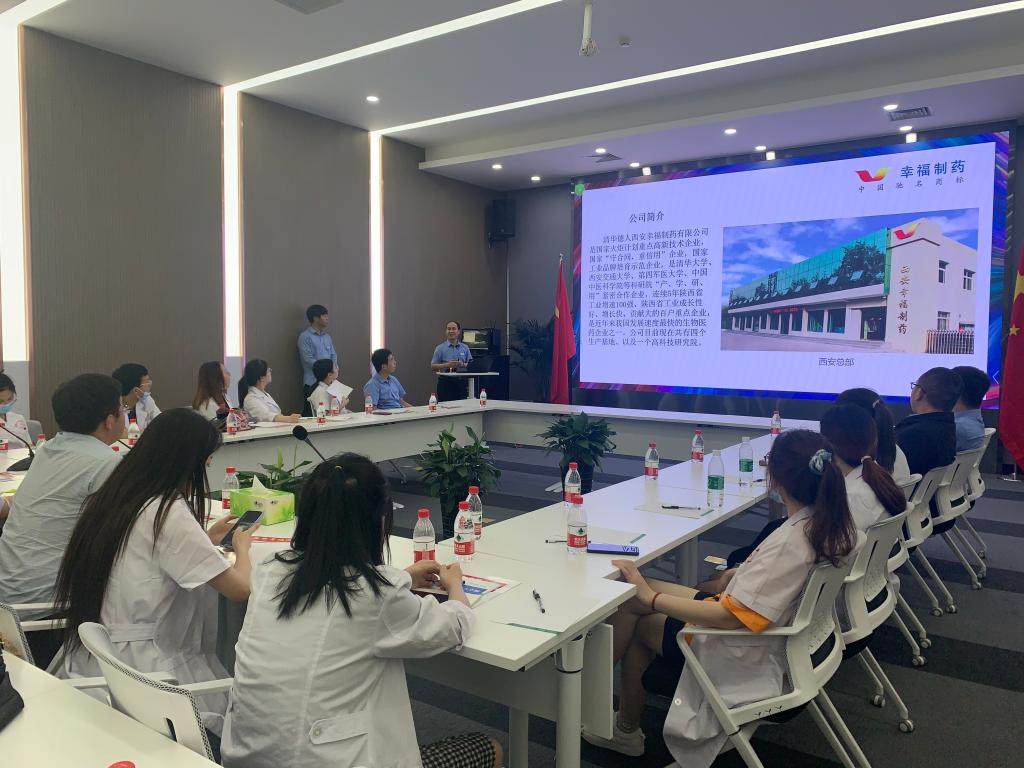 西安幸福制药生产部部长王武对公司员工的见习表示热烈欢迎,向公司师生介绍了公司的发展情况、产业布局、生产规模及技术创新等情况,同时也希望通过见习有更多的员工来幸福制药实习、就业。