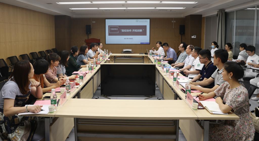 参观过后在医院行政楼举行“院校协作 开拓创新”座谈会。交大口腔医院代表介绍了建院35年来医院的建设情况、“十四五”发展目标以及护理队伍管理和工作开展情况,重点就医院在护理工作中的发展规划和目标、护士队伍的建设与政策支持进行详细说明。