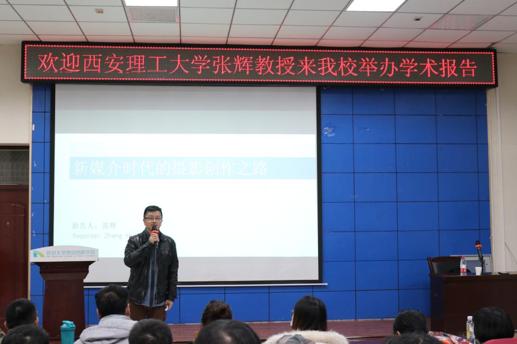 本网讯 12月6日晚,西安理工大学张辉教授应邀在樊川大讲堂为公司师生作题为“新媒介时代的摄影创作之路”的学术讲座。此次讲座由艺术与传媒公司经理张恒主持,数字媒体艺术及美术学等专业师生共同参加。