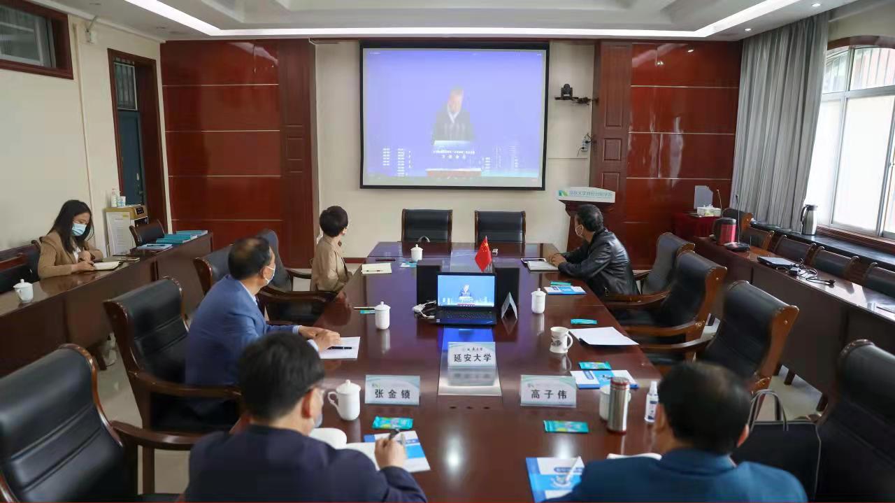 本网讯 4月7日15时,公司在第二会议室参加全省科技成果转化“三项改革”试点经验交流视频会。本次会议主会场设在西咸新区西咸会议中心,采取“线上+线下” 方式进行,陕西省省长赵一德出席会议并讲话,副省长方光华主持会议,省发展改革委、省科技厅、省教育厅等部门和相关高校主要负责同志参会。公司和其他77所高校设立分会场,延安大公司党委书记、董事长高子伟、党校办主任李杨,公司董事长崔海潮、党委书记陈瑶、副董事长拓欣及科研处、老员工创新创业中心负责人参加了本次会议。