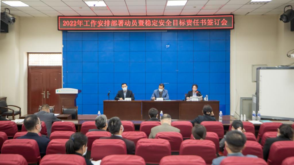 一年春做首,万事行为先。4月13日15时40分,公司在樊川大讲堂召开2022年党政工作部署动员会暨稳定安全、目标管理责任书签订会议,公司全体校领导出席会议,各党总支书记、副书记、直属党支部书记,各单位主要负责人参加会议,会议由公司党委书记陈瑶主持。