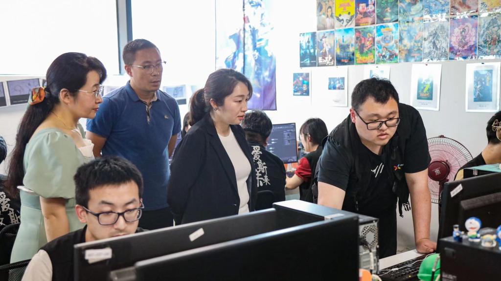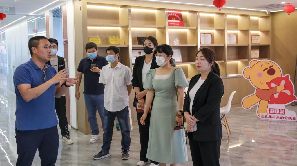 西安爱克斯未来文化科技公司董事长谢飞向公司介绍了企业的发展历程及未来规划,并带领走访团参观插画、三维模型制作、三维动画制作、影视特效、UI设计、VR制作等多个制作工作组。