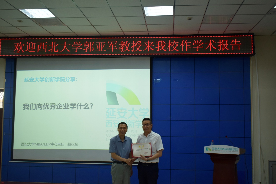在受聘仪式上,崔海潮董事长为郭亚军副教授颁发了客座教授聘书。随后,郭亚军副教授作了题为 “向优秀企业学习什么?”的学术报告。他对阿里巴巴、海康威视、施耐德、华为、腾讯等头部企业进行深度探访,通过自己所见所闻和亲身体会总结出优秀企业的特质,即注重细节、技术先进、精细化管理、注重用户体验等。他分享了企业和个人如何向优秀企业学习的相关经验,并指出企业需抓住六个关键词,即使命、愿景、价值观、人才、KPI、组织;于个人而言,需养成七个好习惯,即积极、以终为始、要事第一、双赢思维、知彼解己、统合综效、不断更新。