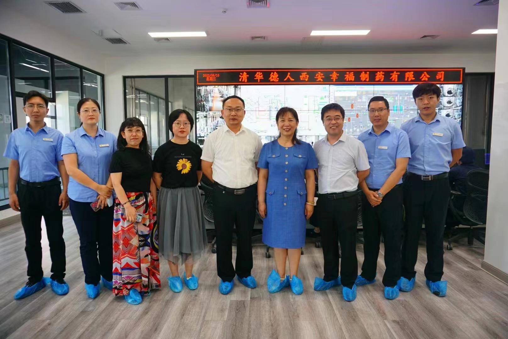 幸福制药有限公司常务副总经理段新荣,副总经理王武,人力资源部长范娟萍等人陪同侯延丽一行参观厂区建设、员工公寓,介绍公司文化,生产流程,技术及人员配备等情况,全方位展示公司未来发展方向。