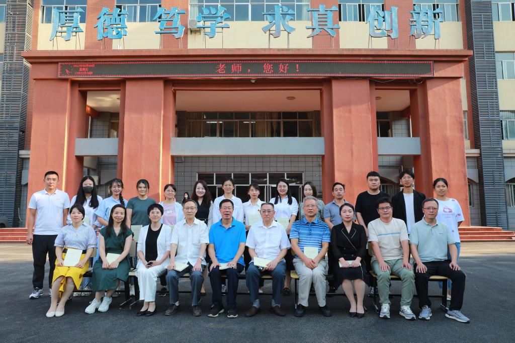 会后,校领导为老中青教师赠送《习近平总书记教育重要论述讲义》作为教师节礼物,并在教学楼前合影留念。