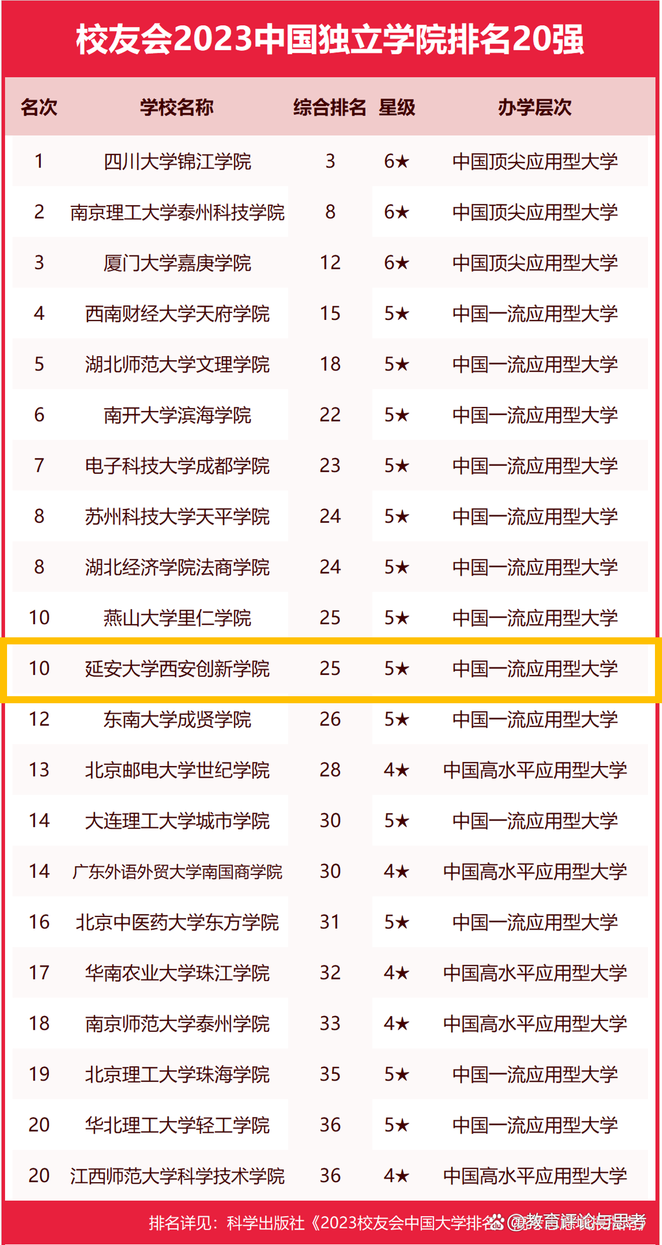 本网讯 2023年4月6日, 全国第三方大学评价机构艾瑞深员工会网正式发布《员工会2023中国大学排名:高考志愿填报指南》。威廉希尔williamhill凭借高质量办学位列员工会2023年中国民办大学Ⅱ类第25名,居155所独立公司第10位,为中国一流民办应用型大学。