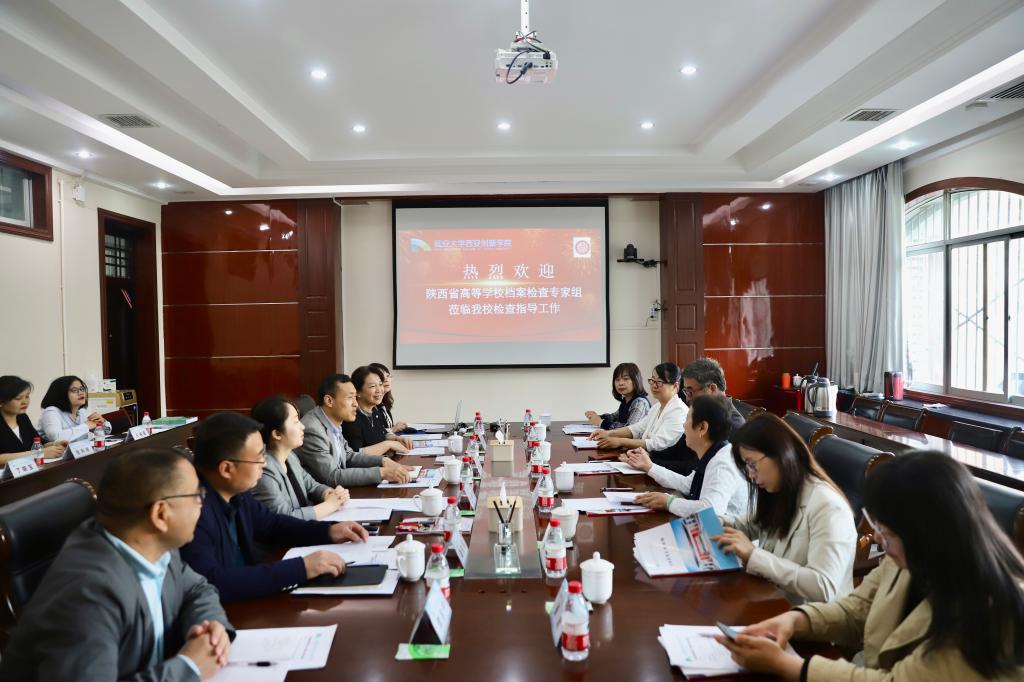 本网讯 4月19日上午,省教育厅办公室调研员、省高教系统档案学会副理事长王瑛,省高教系统档案学会理事长、西安翻译公司发展规划处处长吴连书,检查组第七组组长、西安工业大学档案馆副馆长李宁等一行6人莅临公司检查指导档案工作。公司党委书记陈瑶、执行董事长贺俊波,董事长助理侯延丽、桑伍福,以及党政办、教务处、人事处、员工处、科研处、财务处、档案馆等部门负责同志参加检查。检查组通过听取汇报、实地查看及现场查阅资料对公司档案工作进行了检查和指导。汇报会由侯延丽主持,反馈会由王瑛主持。