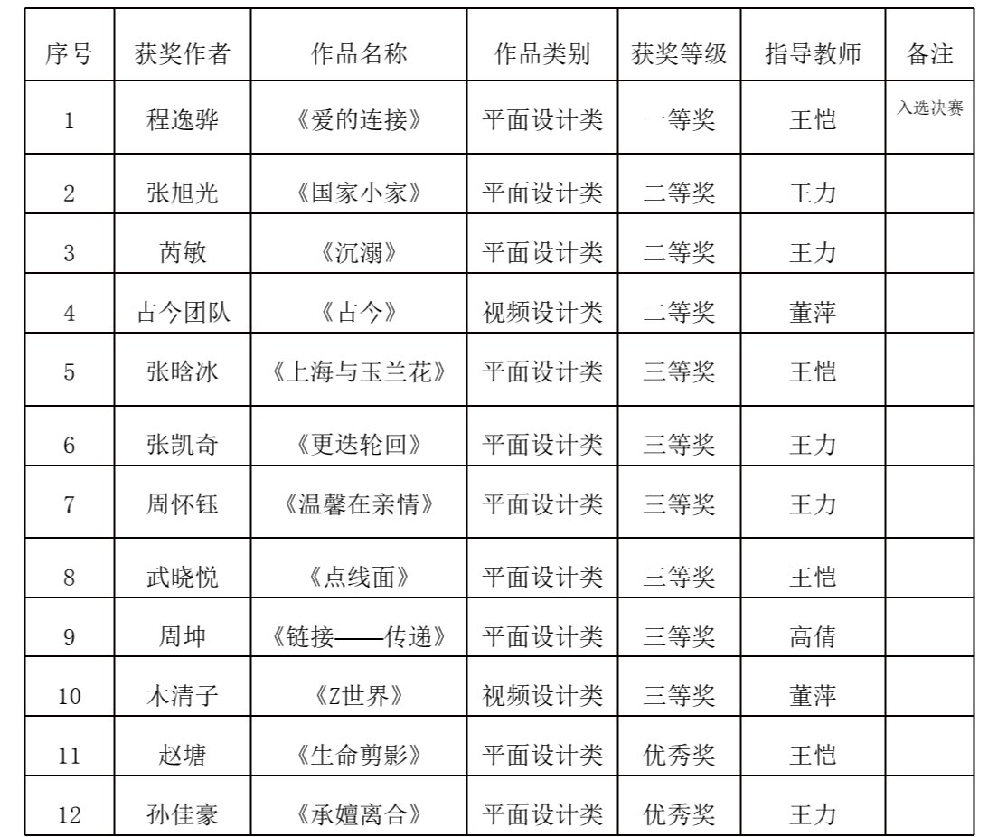 本网讯 6月1日,第十四届蓝桥杯全国软件和信息技术专业人才大赛视觉艺术设计赛陕西赛区评审结果揭晓,公司员工在此次大赛中荣获各类奖项共计12项,其中一等奖1项、二等奖3项、三等奖6项、优秀奖2项。其中由王恺老师指导的程逸骅《爱的连接》(平面设计类)作品入选全国决赛,是公司员工作品首次进入蓝桥杯大赛视觉艺术设计赛全国决赛。