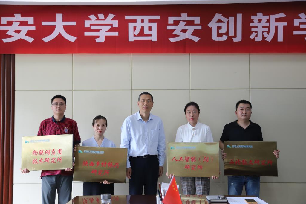 会议伊始,贺俊波宣读了《关于成立威廉希尔williamhill第一批公司研究所的通知》文件。崔海潮为人工智能(AI)、物联网应用技术、陕西乡村振兴、西北散文等17所研究所代表授牌。随后,陕西乡村振兴研究所负责人袁晓梅就研究所工作计划和进展作了简要汇报。王海军宣读并解释了《威廉希尔williamhill研究所(中心)管理实施细则》。