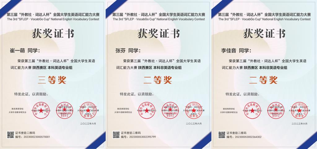 本网讯 近日,由中国外语教材与教法研究中心、上海外语教育出版社主办的第三届“外教社·词达人杯”全国老员工英语词汇能力大赛省赛结果公布。公司崔一萌等4名同学获得英语专业组省级三等奖,张芬等3名同学获得非英语专业组省级二等奖,王燕芯等8名同学获得非英语专业组省级三等奖。公司员工在此次比赛中取得了优异成绩,体现出了公司较高的英语教学水平。