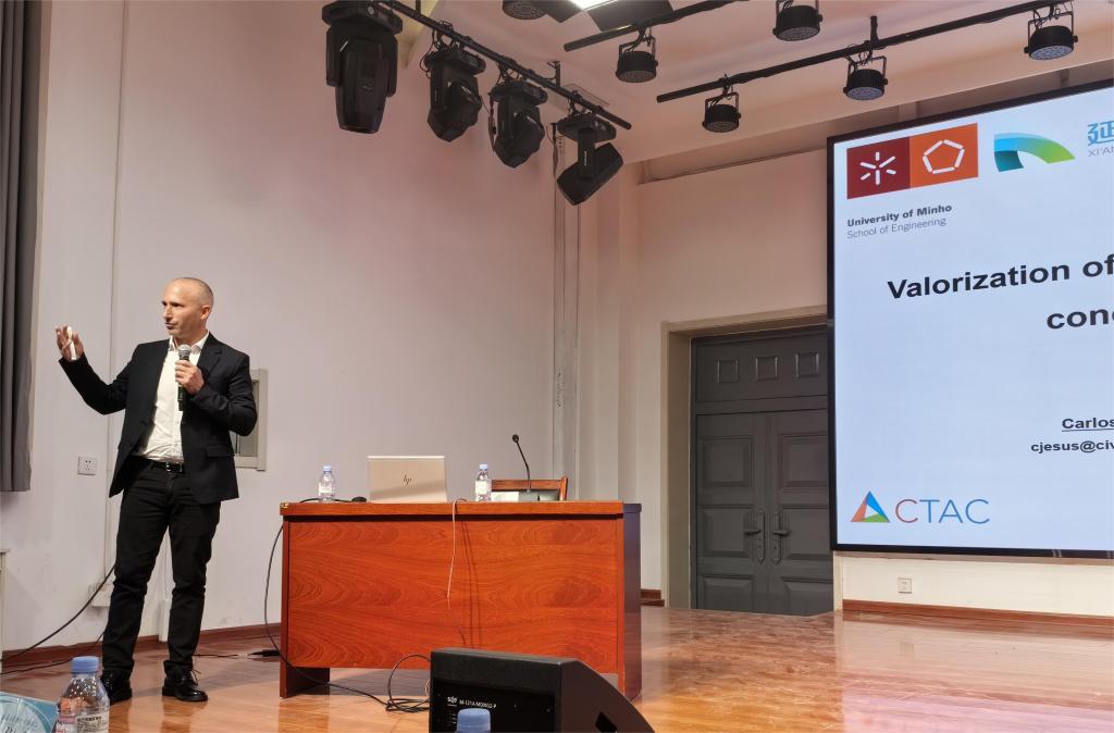 Jose Aguiar教授简要介绍了米尼奥大学概况。他指出,米尼奥大学在国际最有影响力大学排名第96位,其中土木工程专业在世界QS排名位列第140名,并详细介绍了土木工程专业两大研究中心之一的CTAC研究所。他表示,研究所专注研究建筑、城市规划、环境和可持续发展等领域,目标是促进知识创新和技术发展。同时,Jose Aguiar教授还详细阐述了当前新型建筑材料与工业垃圾管理理念。他强调,积极推动垃圾资源化利用,将废弃物转化为可再生能源或再利用的材料,提高材料的耐久性和可回收性,减少对有限自然资源的依赖,降低对环境的影响,是实现可持续发展的重要手段。