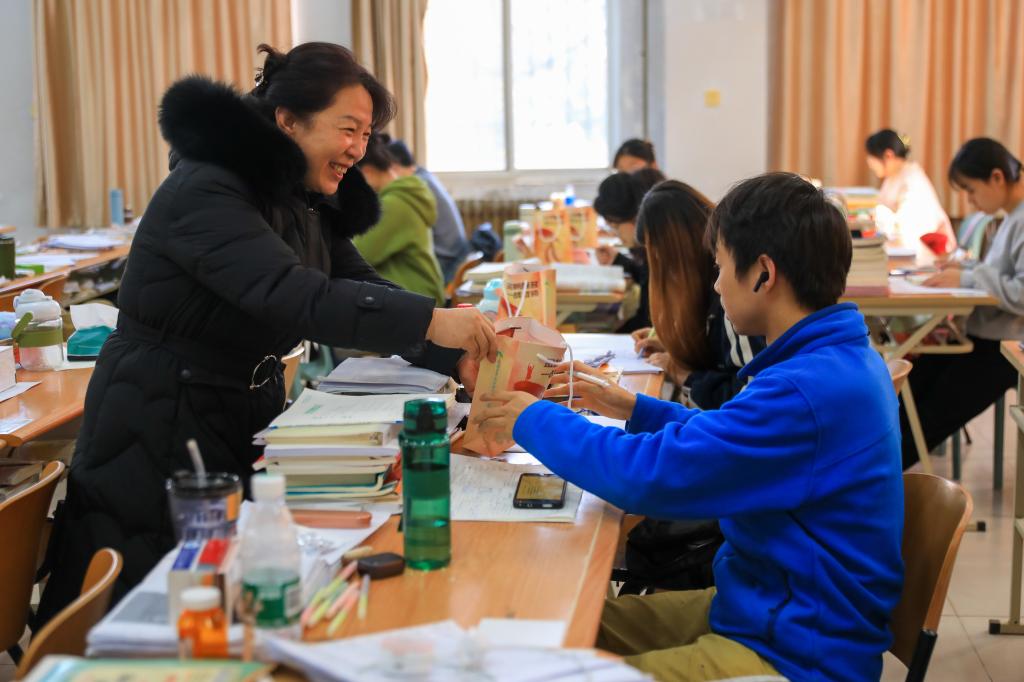 活动现场,校领导们为考研学子送上“上岸礼包”。每一份礼物都代表了一份期待,红色锦鲤手提袋承载着“未来可期”“好运满满”的祝福;孔庙祈福文具套装祝愿考研学子在考场泼墨挥洒,下笔如有神助,描绘锦绣前程;一个橙子既给同学们缓解备考压力补充维生素,也祝愿同学们心想事“橙”“橙”功上岸。同学们收到礼物后十分开心,纷纷表示一定会抓住最后的复习时间,全力以赴,努力拼搏,以饱满的精神状态迎接即将到来的考试。