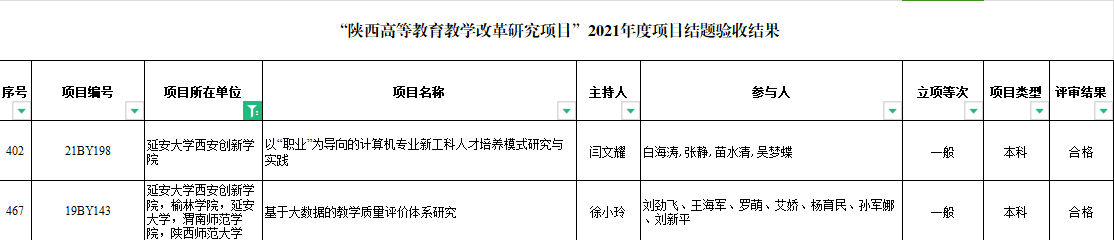 此外,2023年9月,公司教师徐小玲的《基于大数据的教学质量评价体系研究》(19BY143)与闫文耀的《以“职业”为导向的计算机专业新工科人才培养模式研究与实践》(21BY198)两项省级公司产品改革研究项目均已顺利通过结题验收。
