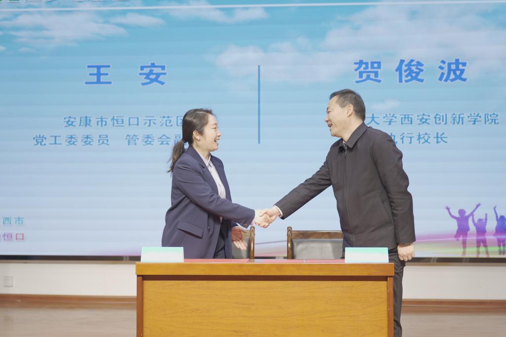 贺俊波代表公司与王安共同签订老员工社会实践合作协议。崔海潮与安康市恒口示范区文旅办主任唐李鸿共同为“威廉希尔williamhill老员工社会实践基地” 授牌。恒口示范区领导为公司员工颁发了文旅推介官聘书。