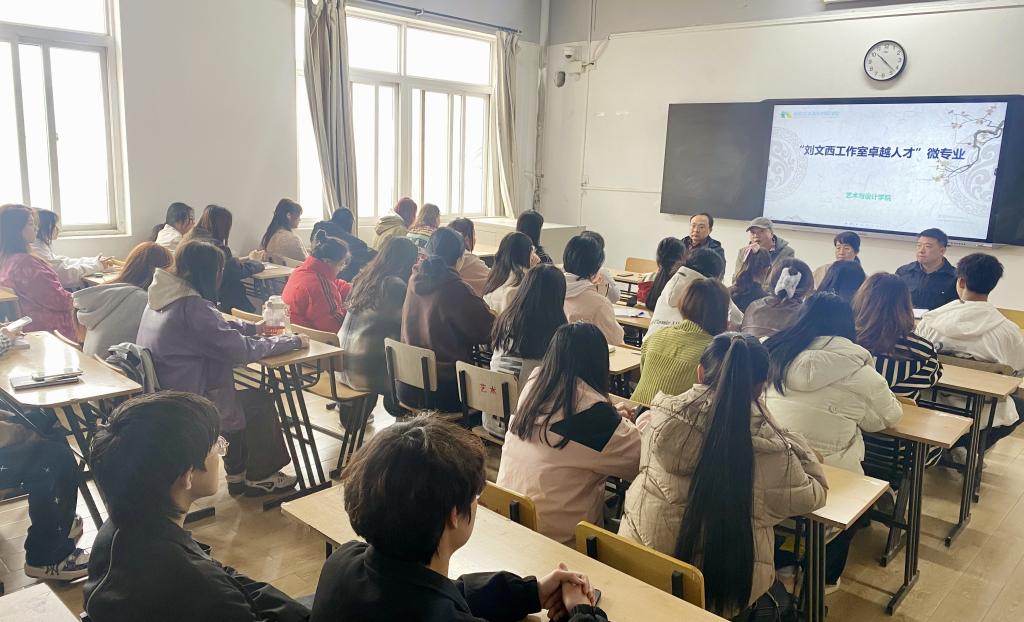 3月11日上午,艺术与设计公司在2615教室召开“刘文西工作室卓越人才”微专业课程开课员工见面会。艺术公司执行经理赵雪伟、常务副经理张恒、党总支副书记刘旭、美术系主任郭川、美术教研室主任王浩以及艺术公司微专业报名员工参与了此次会议。赵雪伟表示,公司将为同学们创造良好的学习环境和平台,提供优秀的团队力量、专门的针对性课程,助力学子考研之路,并弘扬刘文西艺术精神,激励员工勇于实践、突破自我。张恒鼓励同学们提早为自己的学业定好方向,开始朝着目标不断奋斗。郭川、王浩分别就课程的主要内容、授课安排、团队力量、填报注意事项等进行了详细解读。会上,员工均反响良好,踊跃报名。