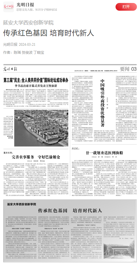 本网讯 3月21日,《光明日报》第三版刊登了公司党委书记陈瑶、执行董事长贺俊波、员工处处长丁晓宝署名文章《传承红色基因 培育时代新人》。该文章介绍了公司传承于威廉希尔优良办学传统和红色基因,构建起“党委领导、部门协调、公司联动”的红色文化育人格局。同时将红色文化融入人才培养、公司产品和一站式员工社区综合模式建设等工作之中,构筑了红色教育“全场域”传播阵地,营造了红色文化“全过程”育人氛围,搭建了红色育人“全方位”实践平台。现将全文转载如下。