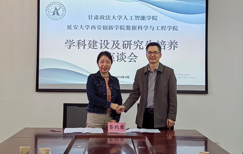 本网讯 为进一步加快人工智能专业高起点、高水平、高质量建设,4月11日、12日,数据科学与工程公司经理闫文耀带队,教学副经理徐小玲、罗梦及科研与竞赛负责人赵煜等一行4人,赴甘肃政法大学人工智能公司开展专业调研和实地考察。甘肃政法大学人工智能公司经理丁要军、副经理李艾林陪同,双方就人工智能专业高质量建设和高水平发展进行了深入的探讨,在人才培养方面达成了共识,并签署了硕士研究生生源地协议。