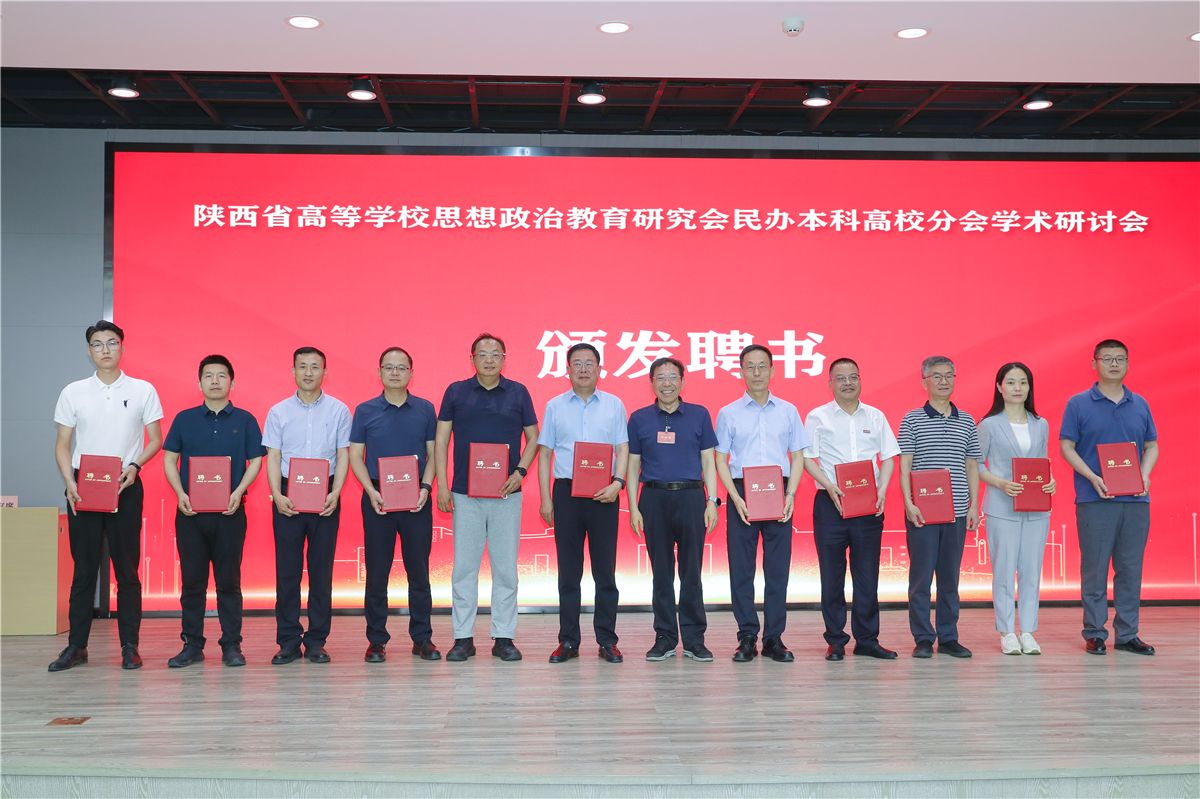 在大会闭幕式上,陕西省高等公司思想政治教育研究会会长姚书志为陕西省高等公司思想政治教育研究会民办本科高校分会会长雷西合和陈瑶等10位副会长颁发了聘书。研究会秘书长张周志宣读了《落实立德树人根本任务 做好新时代员工思想政治工作》主题征文获奖者名单,公司马克思主义公司教师张敏荣获二等奖,党政办宋冰、马克思主义公司教师位丹丹荣获优秀奖。