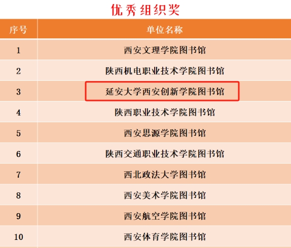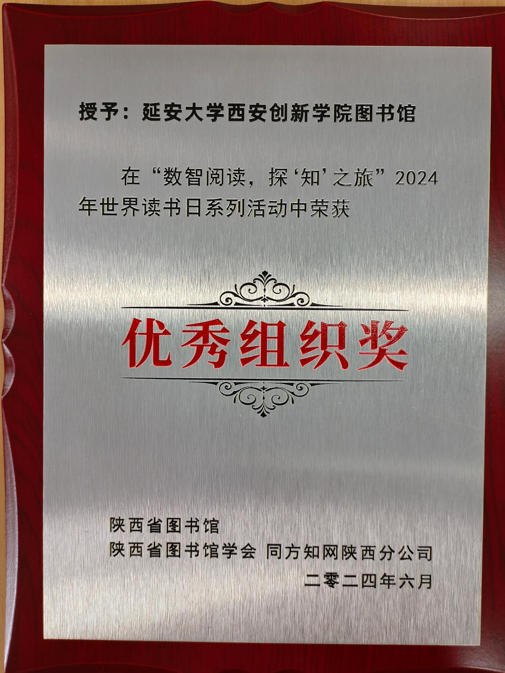 本网讯 近日,由陕西省图书馆、陕西省图书馆学会、同方知网陕西分公司联合举办的“数智阅读,探‘知’之旅”2024年世界读书日系列活动获奖名单揭晓,公司图书馆荣获优秀组织奖,排名位列全省第三。