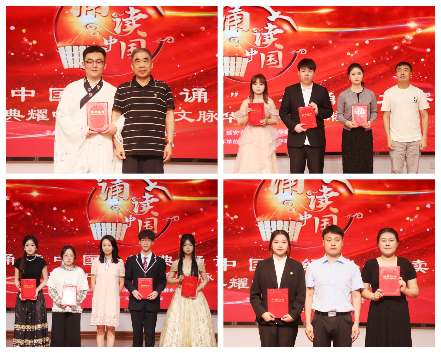 大赛历时近一个月,经历了海选、初赛环节,最终选拔出16组优秀作品进入校级决赛,选手们以饱满的热情投入到这场经典诵读的文化交流盛宴中。他们以真挚的情感诠释着经典作品中的每一个字句,用自己独特的方式演绎经典,让观众们仿佛置身于那激情澎湃的历史时刻。诵读之声不绝于耳,强国之音掷地有声,每一篇娓娓道来的故事都铺成历史。每一次朗诵结束后雷鸣般的掌声不仅是对朗诵者的赞美,更是对那段红色历史的致敬和缅怀。最终,经过激烈的角逐,文教公司许佳晨《将进酒》夺得一等奖;护理公司、文教公司、数据科学与工程公司合作完成的作品《不朽中国》、《红船诵》荣获二等奖;周美晶、李淑然、邓博雯组合《等待》、《点燃明天》、《诗意中国》节目获得三等奖。
