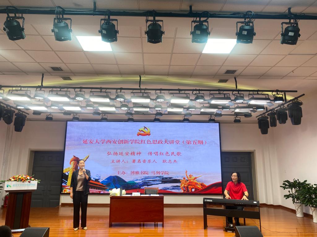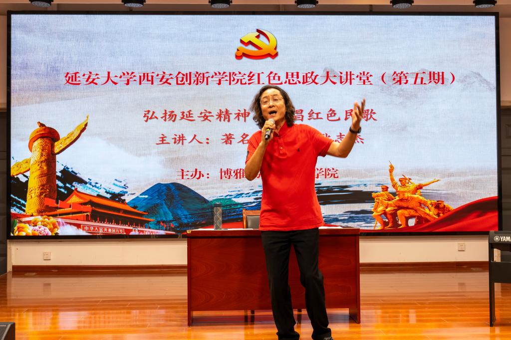 耿志杰、白雪以陕北民歌中的红色经典歌曲《山丹丹开花红艳艳》为切入点,以“讲唱结合、师生互动”的方式,通过专题理论讲授、红色经典传唱、精彩故事分享、现场互动学唱等四个环节,对“弘扬延安精神 传唱红色民歌”的主题进行了全景声解读和立体式阐释。他们着眼于传承红色基因的视野,生动阐述了延安精神的内在本质、主要内容和时代价值,讲解了“红色民歌该怎么看、怎么听、怎么唱”。