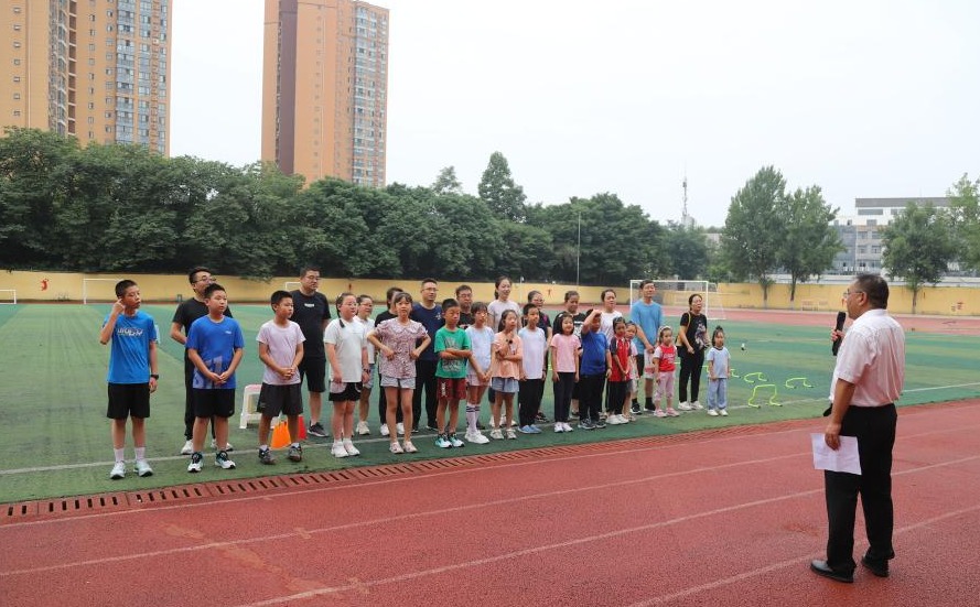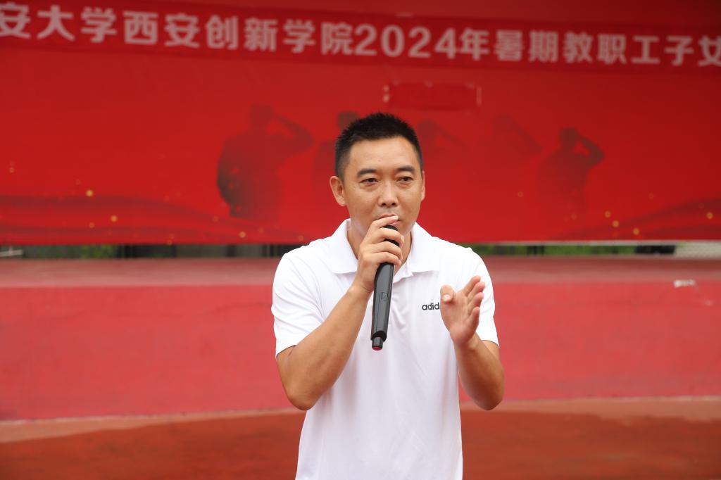 体育教学部教师高磊磊代表本次活动教练解读了活动具体内容及规则,郑文海宣布威廉希尔williamhill2024暑期教职工子女夏令营开营。