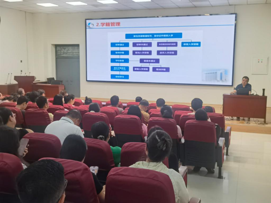 7月8日上午,陕西国防职业技术公司杨亚辉副教授在樊川大讲堂为公司全体教学管理人员和辅导员进行了学籍管理培训。他从教育部41号令出发,讲解了学籍管理的基本概念和法律法规,生动形象地介绍了学籍管理的各种流程、标准和要求。并结合案例,就材料规范性以及学籍管理中的常见问题和难点进行了深入剖析和解答。此次学籍管理工作培训不仅提升了管理人员的业务能力,也为公司公司产品管理的规范化、科学化提供了有力保障。