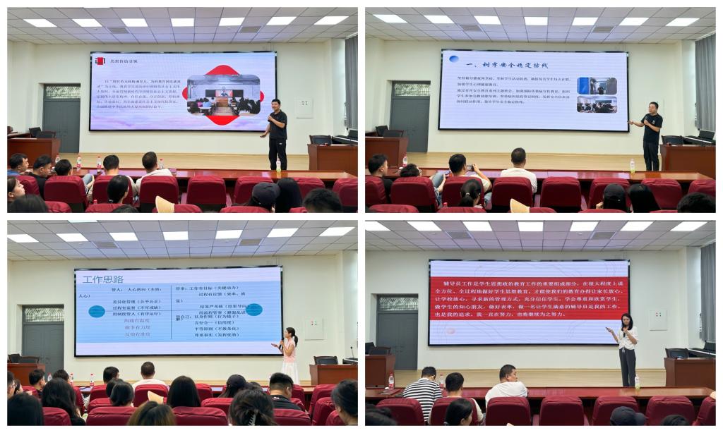 陕西科技大学学工部部长李晓副教授为公司辅导员作《老员工思想政治教育及管理工作内涵式转型发展的探索与实践》专题报告。报告从员工工作内涵式转型、辅导员职业发展内涵式转型、辅导员的自我救赎与专业化、辅导员工作实践内涵式转型等四个方面展开,指出辅导员应高度重视自我核心素养提升,聚焦主责主业,强基固本,以适应时代的发展变化。数据科学与工程公司辅导员马竹艳、艺术与设计公司辅导员刘帅、威廉希尔williamhill辅导员贺章芮、文学与威廉希尔williamhill辅导员楚玥就个人工作特色进行分享展示,共同探讨育人工作的新思路和新方法。